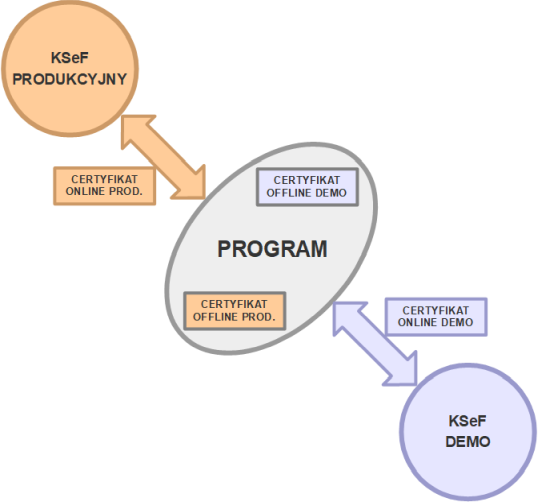 Program umożliwia współpracę z dwoma bliźniaczymi, jednak osobnymi środowiskami KSeF: