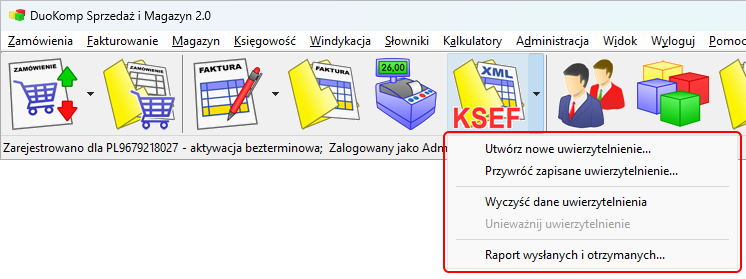 Rozdział 3.3.1.Stanowiska robocze » Krajowy System e-Faktur (KSeF) » KSEF W PROGRAMIE