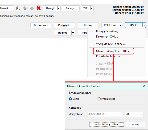 Tworzenie faktury KSeF offline