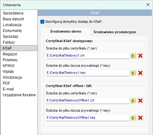 Program umożliwia współpracę z dwoma bliźniaczymi, jednak osobnymi środowiskami KSeF: